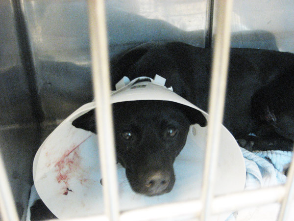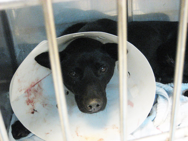 阿嗚的食慾很好,只是剛開完刀,每天下午要換藥避免傷口發炎