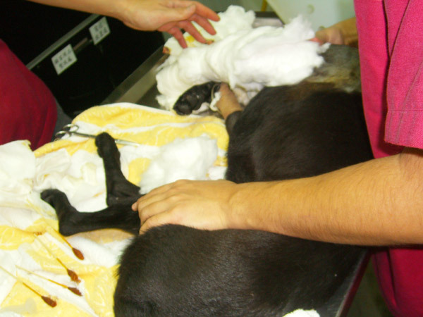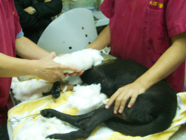 阿嗚左前腳已經開完刀了,醫生花了5個小時開刀