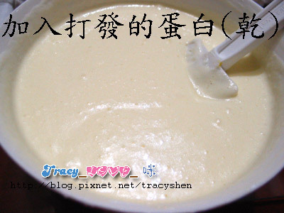 把剛剛弄好的起司蛋黃糊+打發的蛋白
