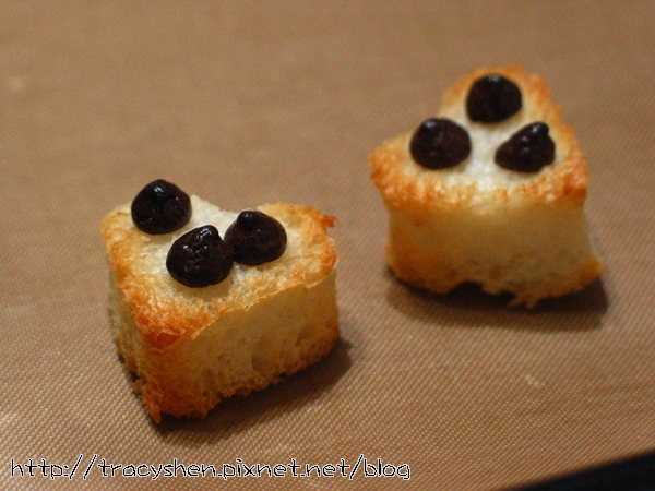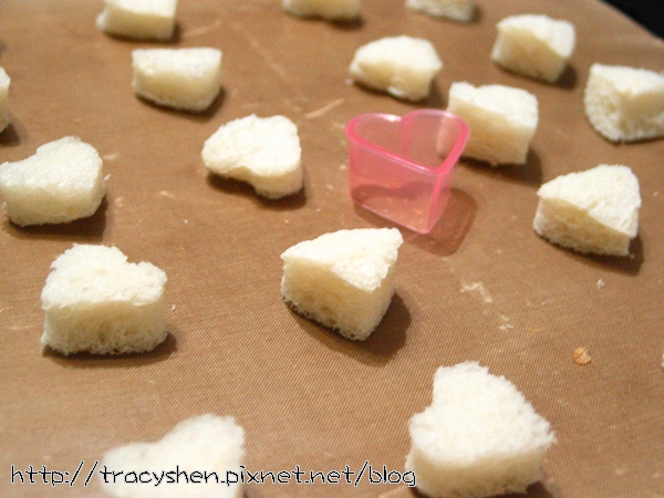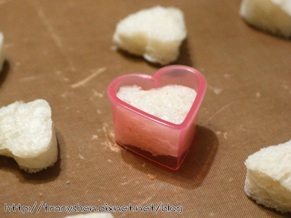 好幾片土司才壓出這幾粒愛心....很快就可以吃光光了說