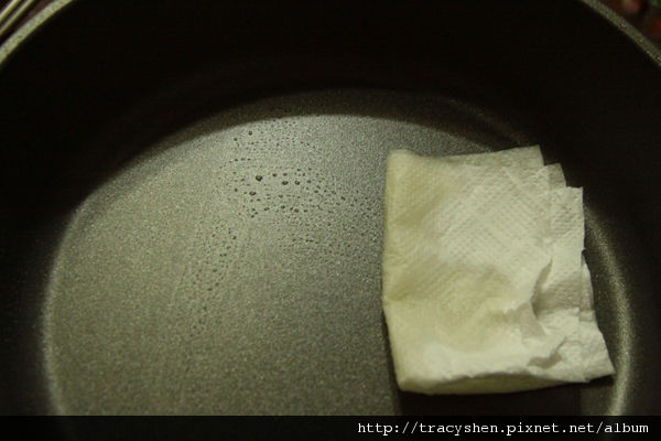 我把熱水拿去沖吃完晚餐要洗的那些碗盤